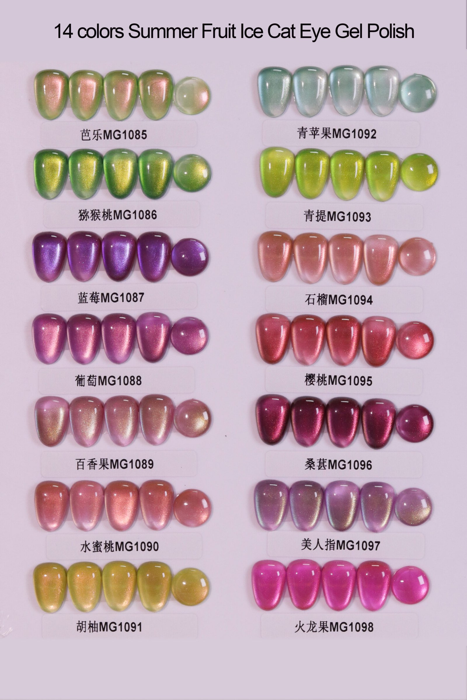 Fourteen juicy, summer-inspired shades with a sparkling cat-eye effect.